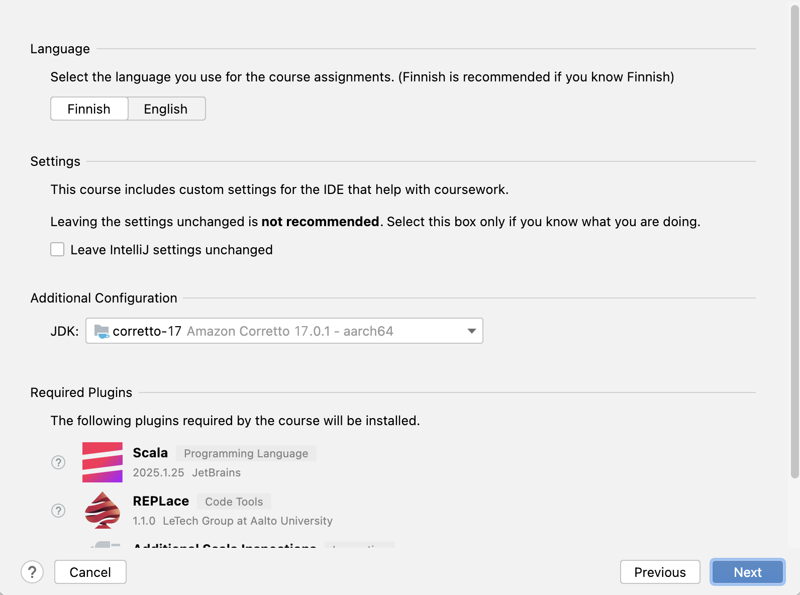 Importing course settings to IntelliJ (without the A+ Courses plugin)